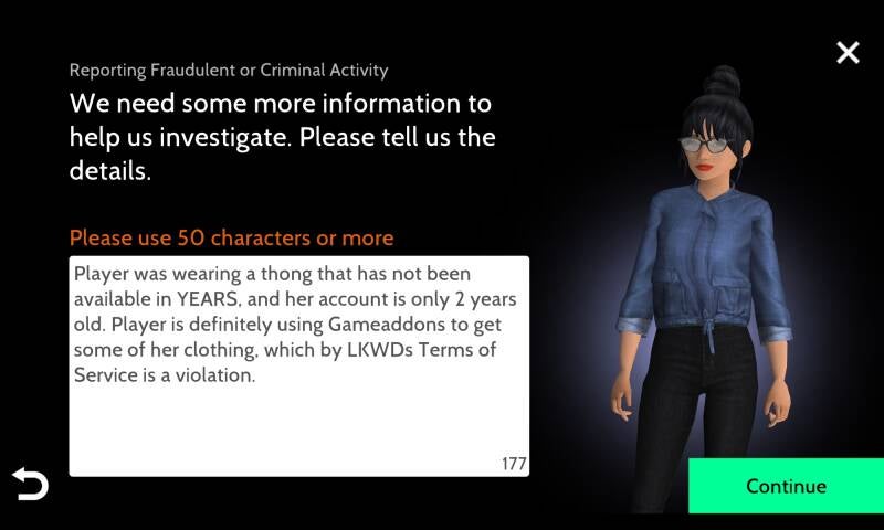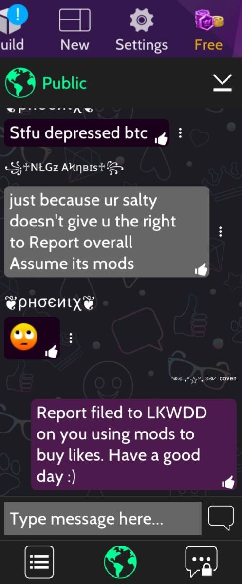 Player using 3rd party services to buy likes which is a violation of LKWDs Terms of Service. Report shown below.